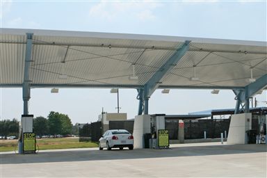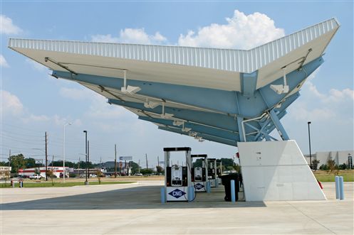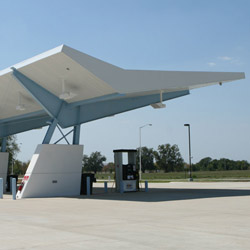 Construct Alternative Fuel Station with all required compression and dispenser equipment with steel framed concrete base awnings.
