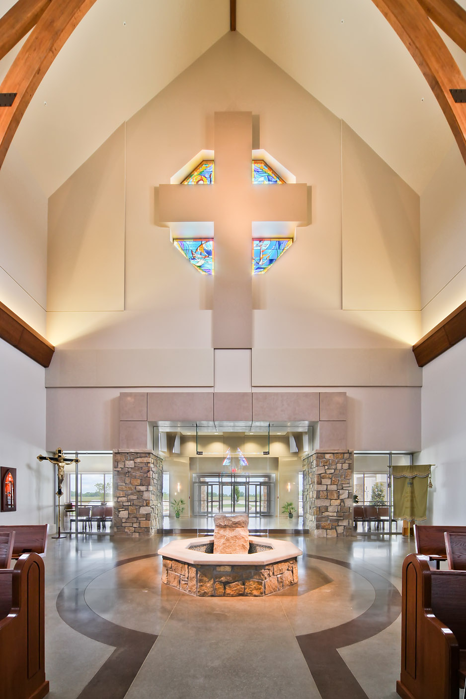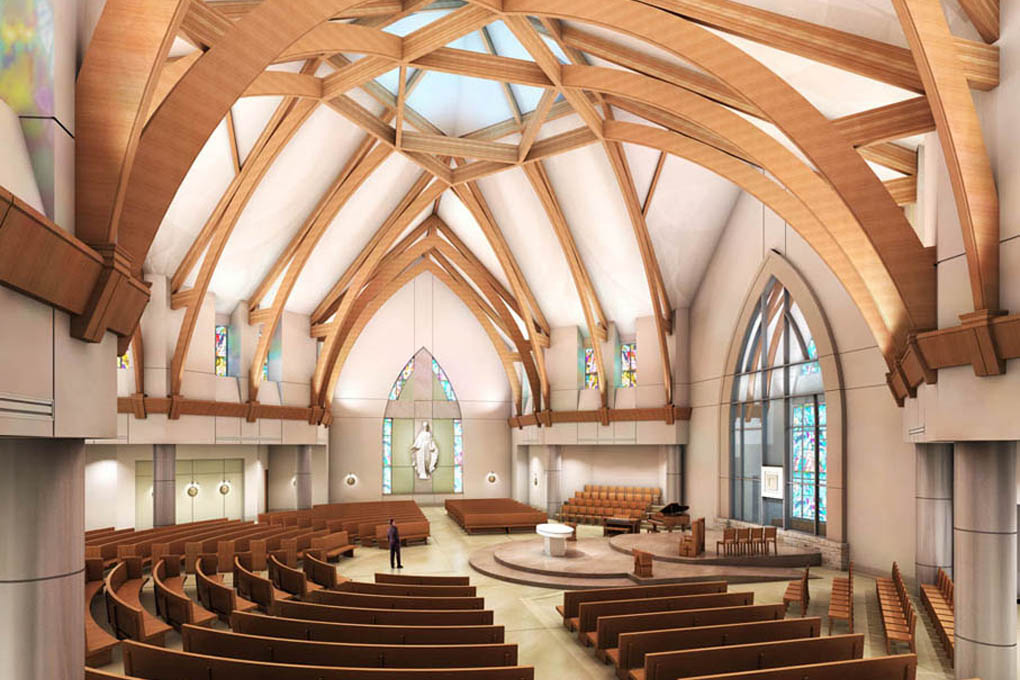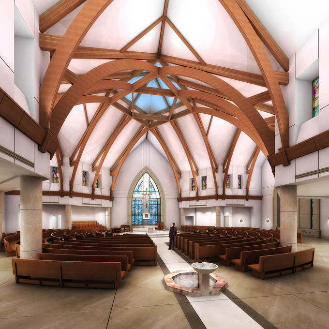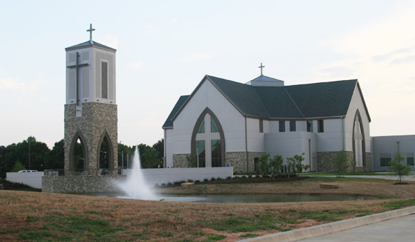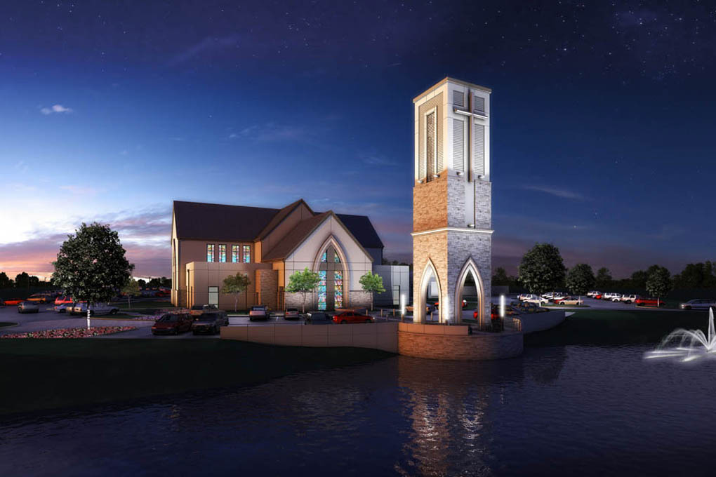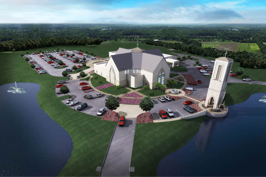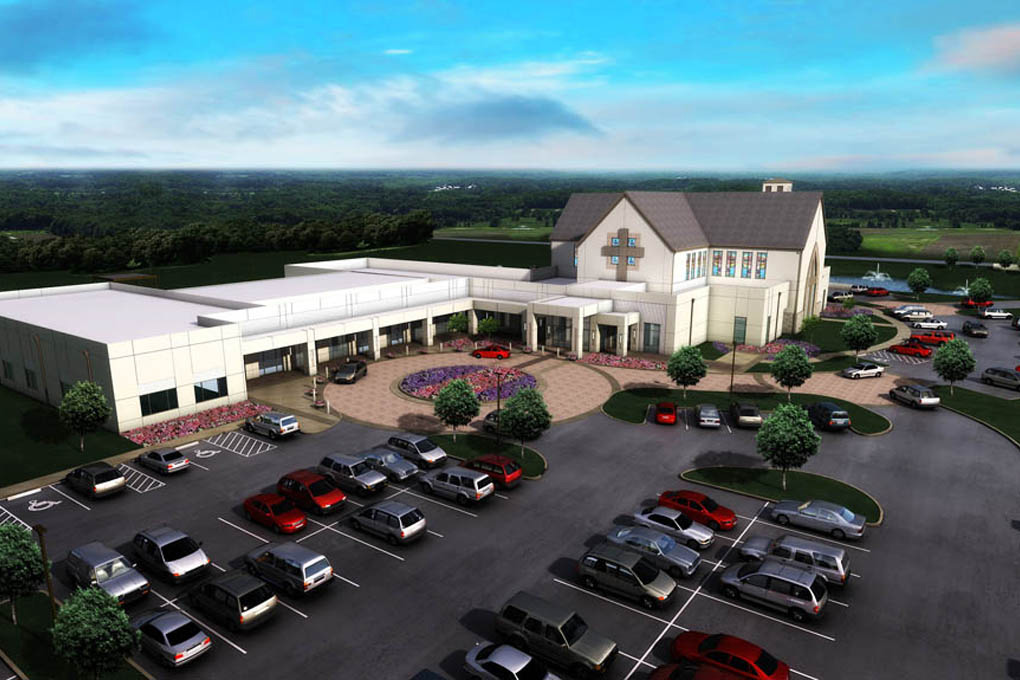Construct new church sanctuary, bell tower, administrative area, kitchen, family life center, classrooms, maintenance and loading area.